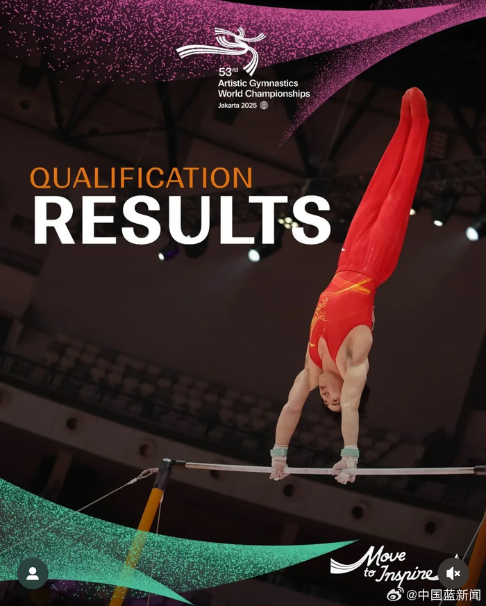 [#国际体操联合会封面发张博恒#]国际体操联合会在社交媒体发布了2025年世界体操锦标赛资格赛结果,封面选择的是中国运动员@張博恆。张博恒在体操世锦赛资格赛中整体发挥正常,最终以全能第三的成绩晋级决赛,全能决赛将于明天(10月22日)举行。#一人一句为张博恒加油#