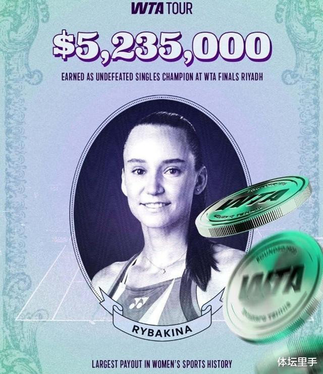 北京时间11月9日凌晨,前温网冠军莱巴金娜直落两盘以大比分2-0横扫世界第一萨巴伦卡,以全胜战绩夺得了2025赛季WTA年终总决赛女单冠军。WTA官方指出,总决赛全胜夺冠的莱巴金娜将带走女子体育史上最高单笔奖金:523.5万美元!莱巴金娜创造了全新的历史!