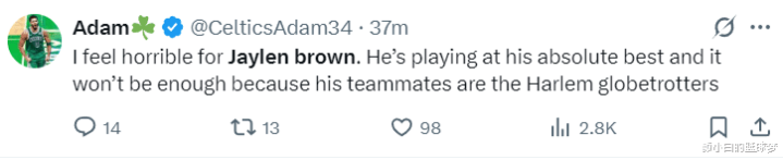 凯尔特人媒体:为杰伦布朗感到难过,他目前的状态堪称最佳,但仅靠他一人远远不够,他身边的球员都没能发挥出应有的水准。