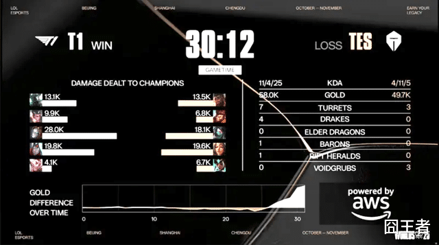 结果第一局比赛,双方各打了半场好局,T1笑到了最后。5分钟左右,Hang与Creme躲掉发条大招,TES野区对拼占优拿下一血;23分钟左右,TES团前被打掉召唤师技能,T1轻松拿下听牌龙;25分钟左右,Kanavi团战轻松被Doran单防,T1完成0换2拿下厄塔汗与大龙;27分钟左右,Creme尽力击杀Gumayusi,Oner化身战神兜住团战拿下风龙魂;最终30分12秒,T1团灭TES,先赢一局!