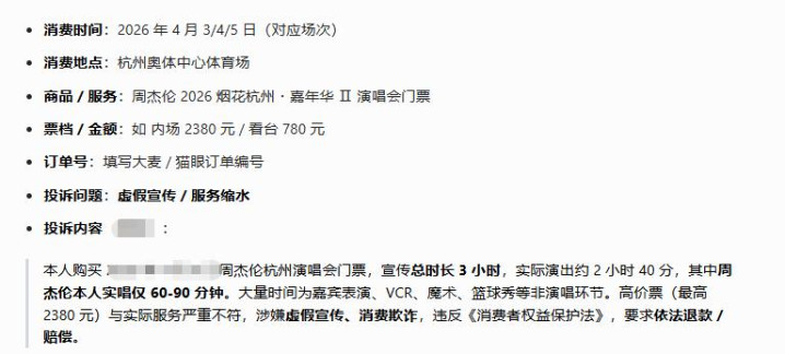 投诉潮来了。消费者投诉至12315要求退票。大麦平台也被投诉售卖严重遮挡座位。杭州市文旅局称没接到投诉,主办方电话无人接听。周杰伦本人玩梗回应:“有觉得我老了吗?嗓子怪怪的吗?唱不好会检讨。”但官方至今未正式回应。