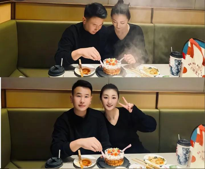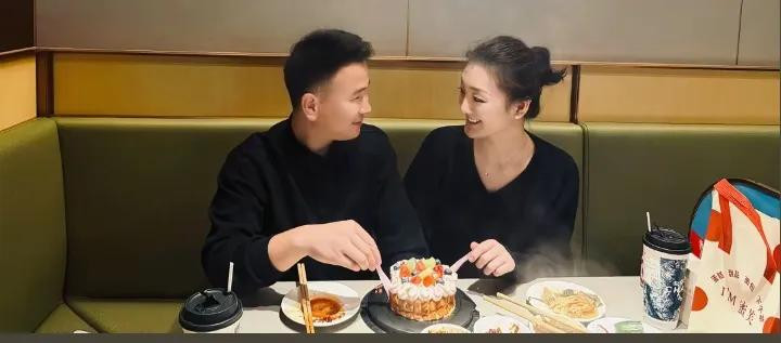 两人在一起庆生,一起吃蛋糕,好甜蜜,这才是小情侣该有的模样。