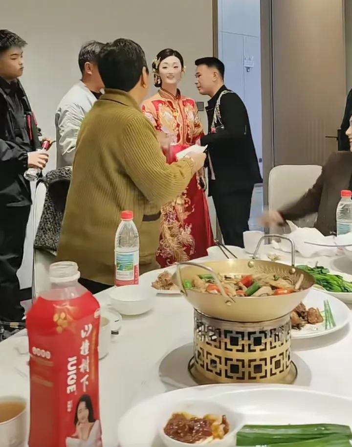 两人穿着中式礼服,席间男方与亲友们觥筹交错,赢得了长辈们的喜爱。